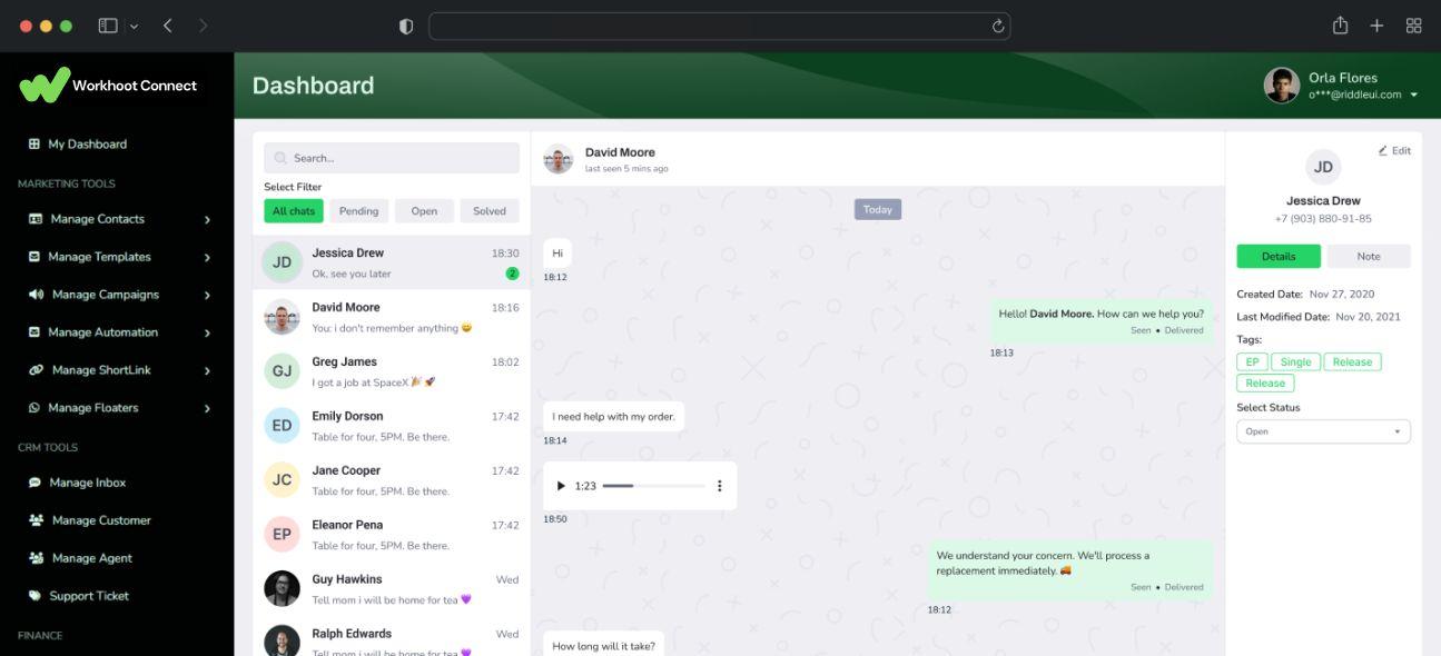 Manage all your WhatsApp chats in one smart inbox. Assign conversations to agents, track responses, and resolve issues quickly. Ideal for customer support teams.